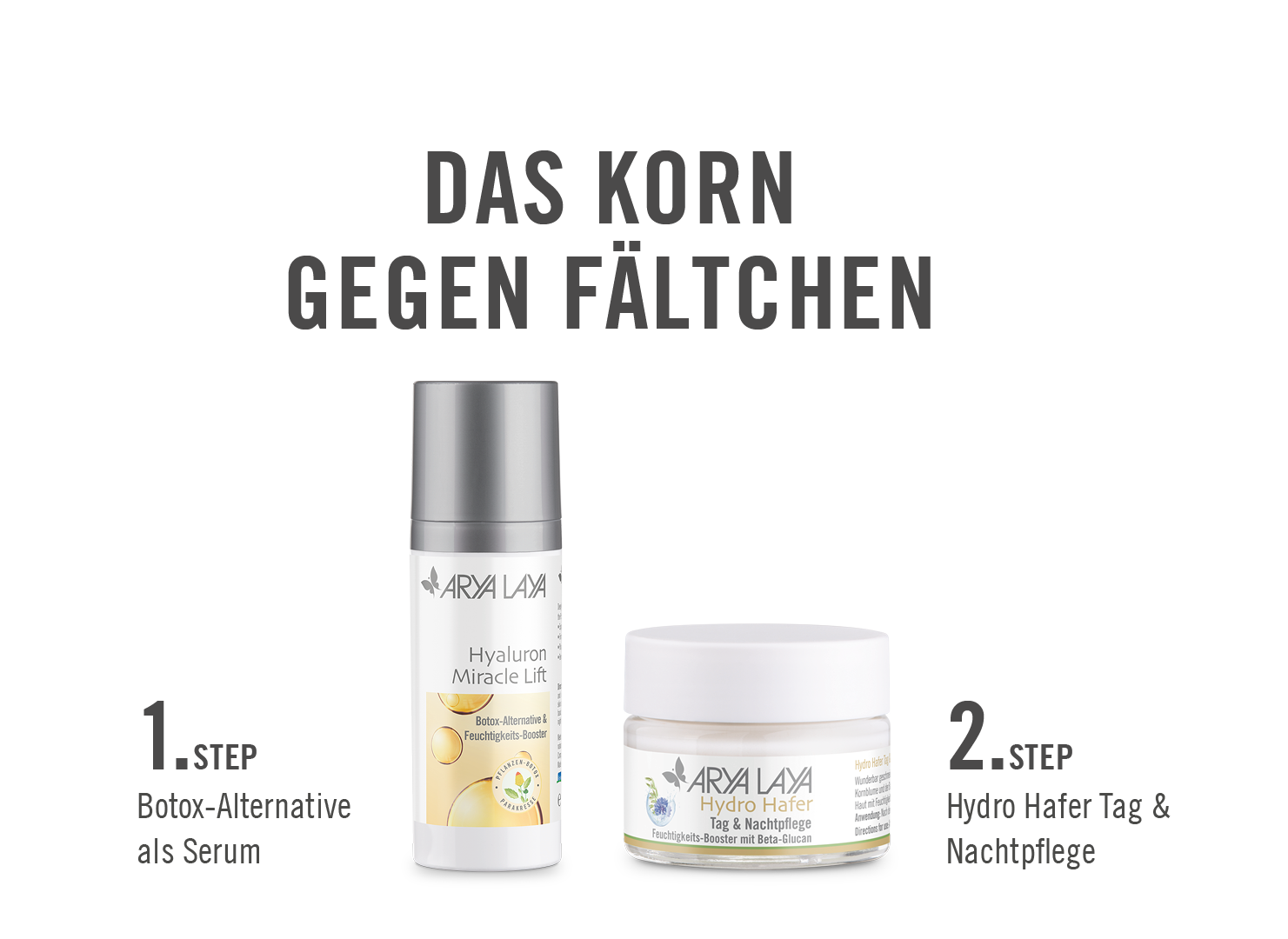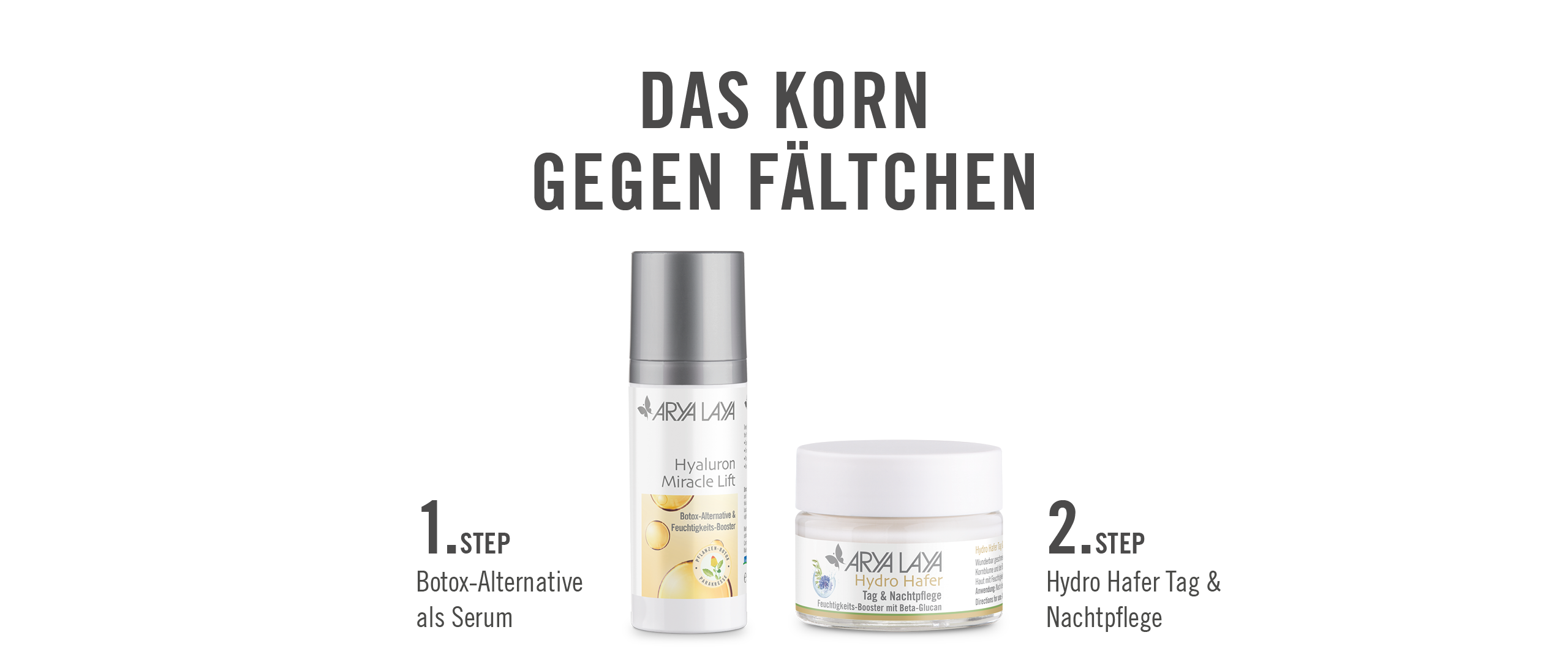 Sollten Sie gerade darüber nachdenken, Ihre Pflege auf Naturkosmetik wie zum Beispiel ARYA LAYA umzustellen, dann probieren Sie doch als erstes einen Fett-Feucht Balancer, Hyaluron Miracle Lift oder eine Augenpflege aus. Sie werden die Wirkung sehr schnell sehen und spüren. Auch die Hydro Hafer Tag & Nachtpflege ist ein empfehlenswertes Produkt für den Einstieg.